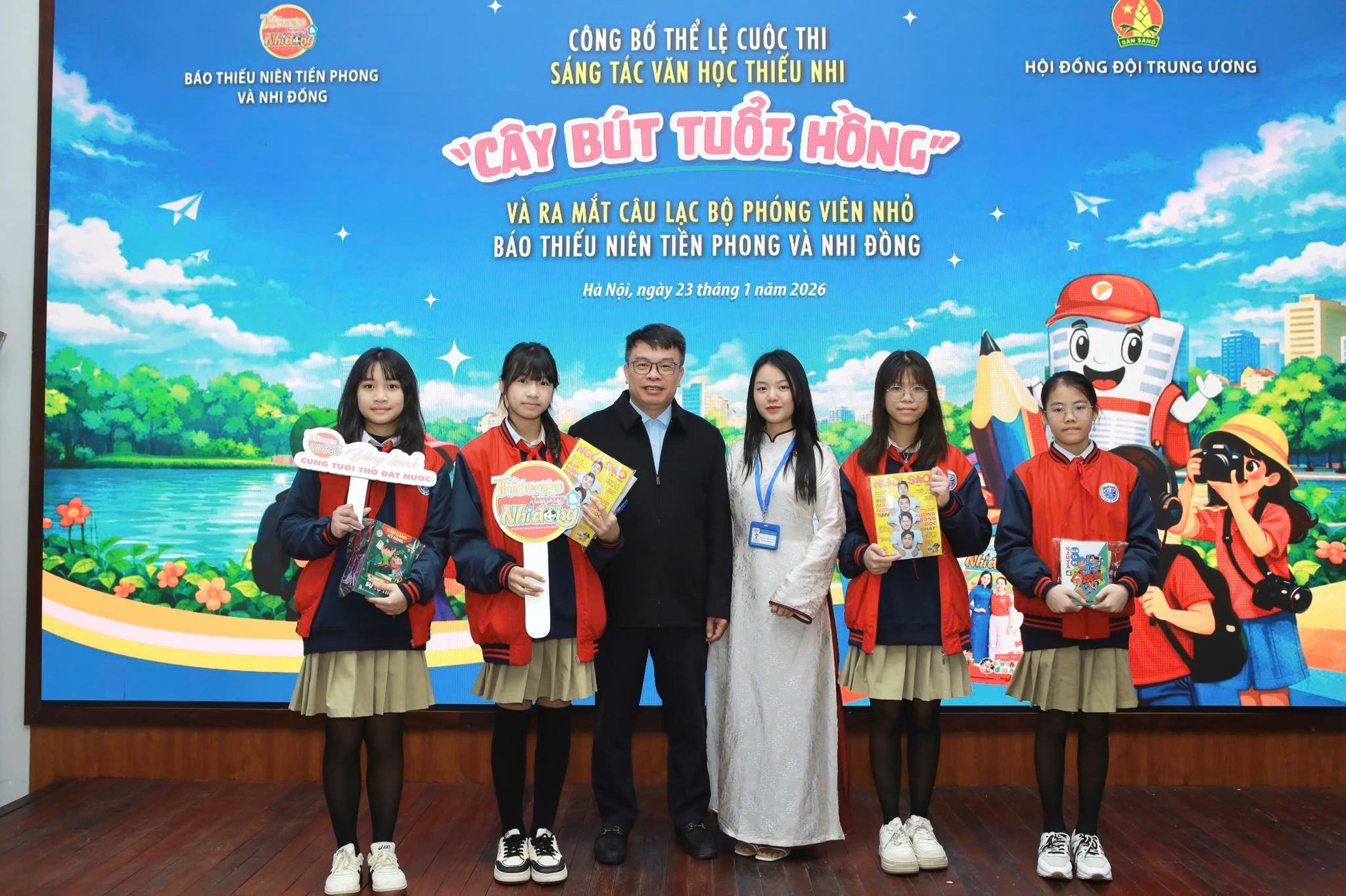 Sáng ngày 23/1/2026, tại Hội trường tầng 2, trụ sở Báo Thiếu niên Tiền phong và Nhi đồng (số 3 Nguyễn Quý Đức, Thanh Xuân, Hà Nội), chương trình Công bố thể lệ cuộc thi sáng tác văn học thiếu nhi “Cây bút Tuổi hồng” và Ra mắt câu lạc bộ Phóng viên nhỏ Báo Thiếu niên Tiền phong và Nhi đồng đã diễn ra trong không khí vô cùng sôi nổi và ấm áp.