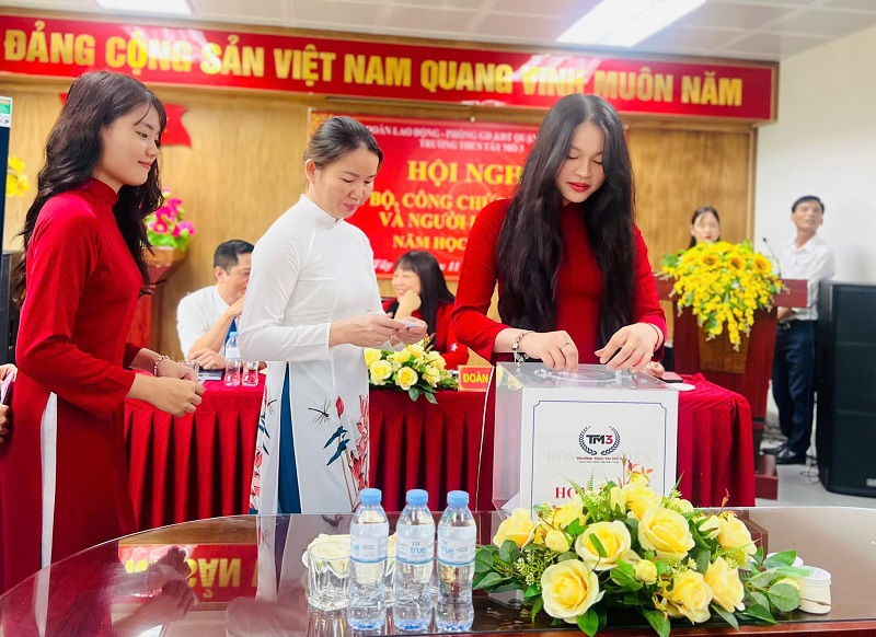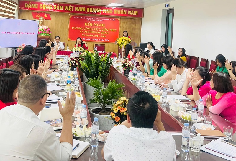 Tại Hội nghị, đại biểu đã biểu quyết thông qua các chỉ tiêu và giải pháp thực hiện nhiệm vụ năm học. Để thể hiện sự quyết tâm, đoàn kết thực hiện thành công Nghị quyết hội nghị năm học mới, Ban Giám hiệu và Ban Chấp hành Công đoàn nhà trường đã thống nhất các quy chế làm việc, quy chế khen thưởng và chi tiêu nội bộ trong năm học 2024 – 2025.