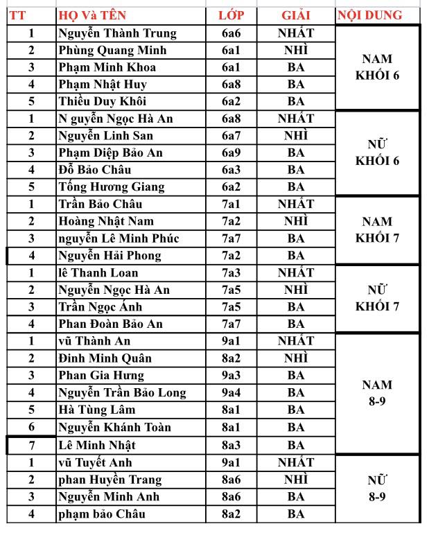 Tiếp theo môn thi đấu tại Hội khỏe Phù Đổng trường THCS Tây Mỗ 3 lần thứ II năm 2026, giải Cờ vua đã khép lại với những kết quả ấn tượng từ các vận động viên các lớp.