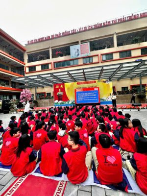 Mở đầu chương trình là bài hát “Hello Vietnam” do em Trần Ngọc Ánh lớp 7A5 và đội văn nghệ nhà trường biểu diễn. Đây là một tiết mục đầy cảm xúc và ý nghĩa!
