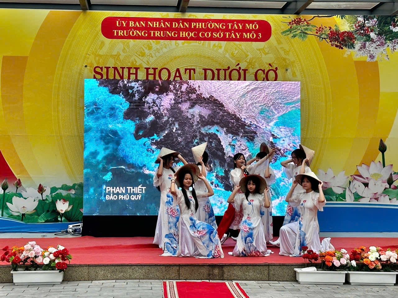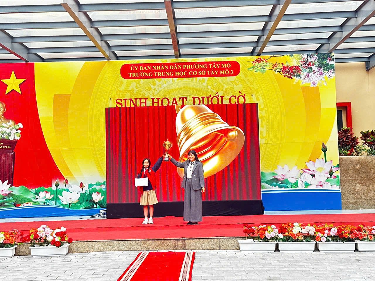Mở đầu chương trình là bài hát “Hello Vietnam” do em Trần Ngọc Ánh lớp 7A5 và đội văn nghệ nhà trường biểu diễn. Đây là một tiết mục đầy cảm xúc và ý nghĩa!