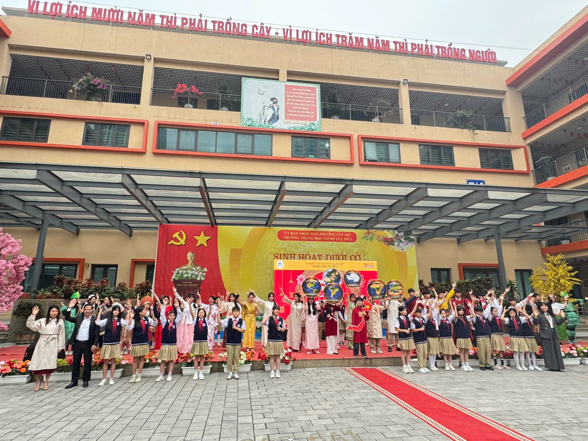 Chuyến hành trình xuyên lục địa tại Language Festival của trường THCS Tây Mỗ 3 là hành trình đến với 11 quốc gia, 11 bản sắc. Tất cả cùng nhau tạo nên một bức tranh thế giới thật rực rỡ ngay. Hy vọng show diễn đã giúp các em thêm yêu ngôn ngữ và những nền văn hóa mới (Our cross-continental journey at the Language Festival with 11 countries,11 different identities have created a brilliant global picture right here at Tay Mo 3. We hope this show has inspired you to love languages and new cultures even more).