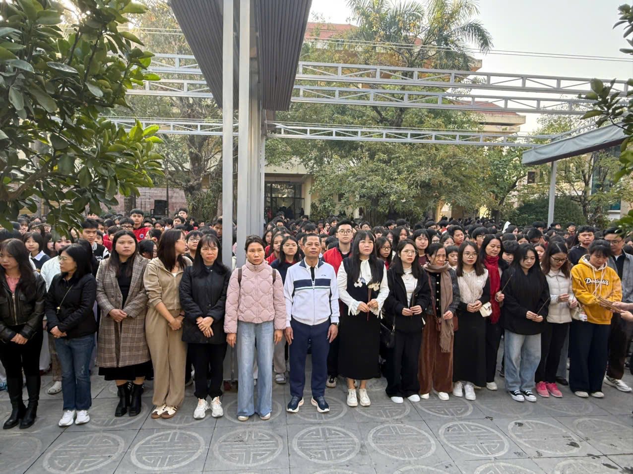 Từ đầu giờ sáng, sân trường đã ngập kín màu đỏ của những bộ đồng phục nhà trường, đan xen những tiếng gọi nhau tìm vị trí lớp, và không thể thiếu là những gương mặt rạng rỡ thể hiện rõ sự mong chờ của những cô cậu học sinh. Cũng vì sự háo hức ấy mà các lớp chỉ cần khoảng 15 phút để tập hợp đủ học sinh và bắt đầu di chuyển đến Bảo tàng Đường mòn Hồ Chí Minh và Khu sinh thái Bản Mường Xanh.
