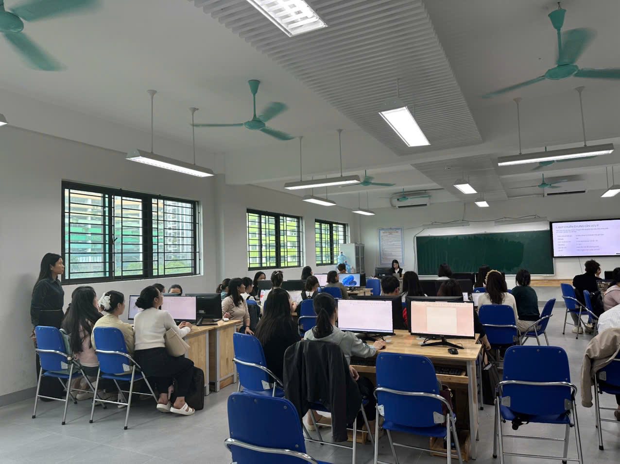 Tiếp theo, thầy cô tham gia được hướng dẫn chi tiết về quy trình soạn thảo, trình ký văn bản và trực tiếp thực hành soạn thảo theo đúng thể thức, kỹ thuật trình bày quy định tại Phụ lục I của Nghị định 30/2020/NĐ-CP. Qua buổi tập huấn, thầy cô đã rèn luyện thao tác thực tế, từ đó hiểu rõ và áp dụng chính xác hơn các yêu cầu trình bày văn bản.