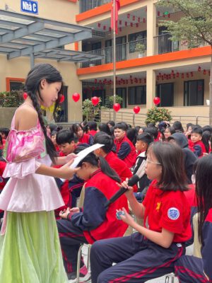Cũng trong buổi sinh hoạt, thầy cô và học sinh trong toàn trường xúc động chia tay em Nguyễn Ngọc Uyên Nhi học sinh lớp 7A8. Uyên Nhi là một học sinh chăm ngoan và là một MC giỏi giang của nhà trường với giọng dẫn ấm áp, truyền cảm. Chúc em thượng lộ bình an, có một hành trình du học thật đáng nhớ và thành công rực rỡ tại đất nước Úc xinh đẹp!