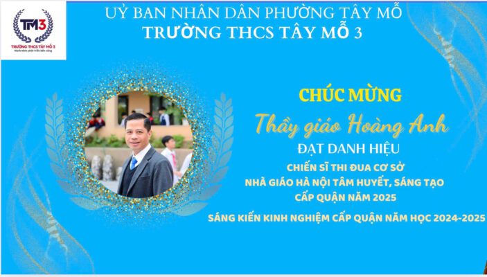 Một lần nữa, trường THCS Tây Mỗ 3 trân trọng chúc mừng nhà giáo – Phó Hiệu trưởng Hoàng Anh với những thành tích xuất sắc trong năm 2025.