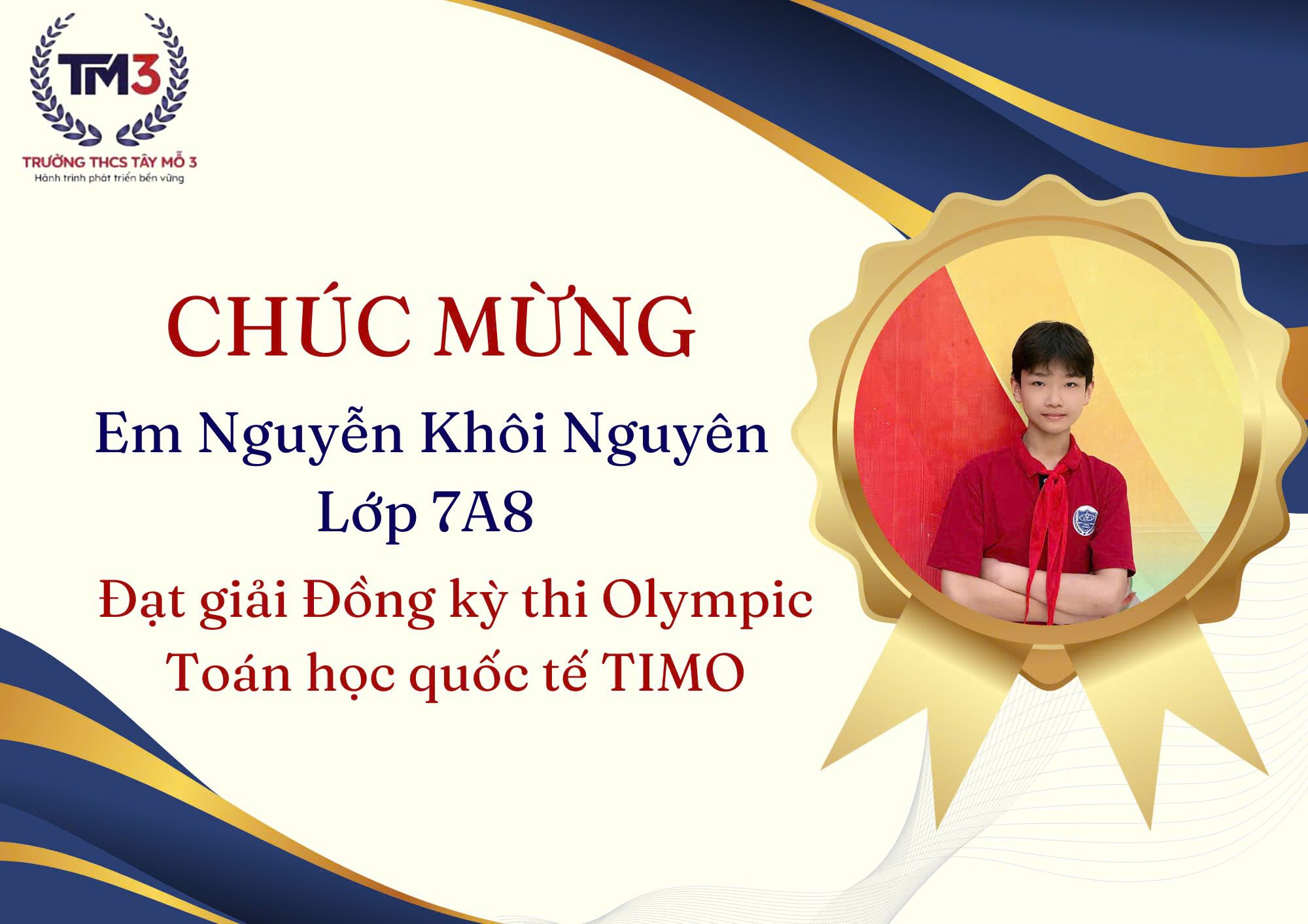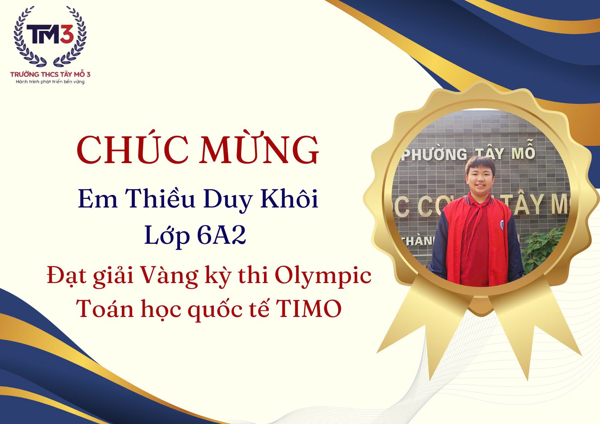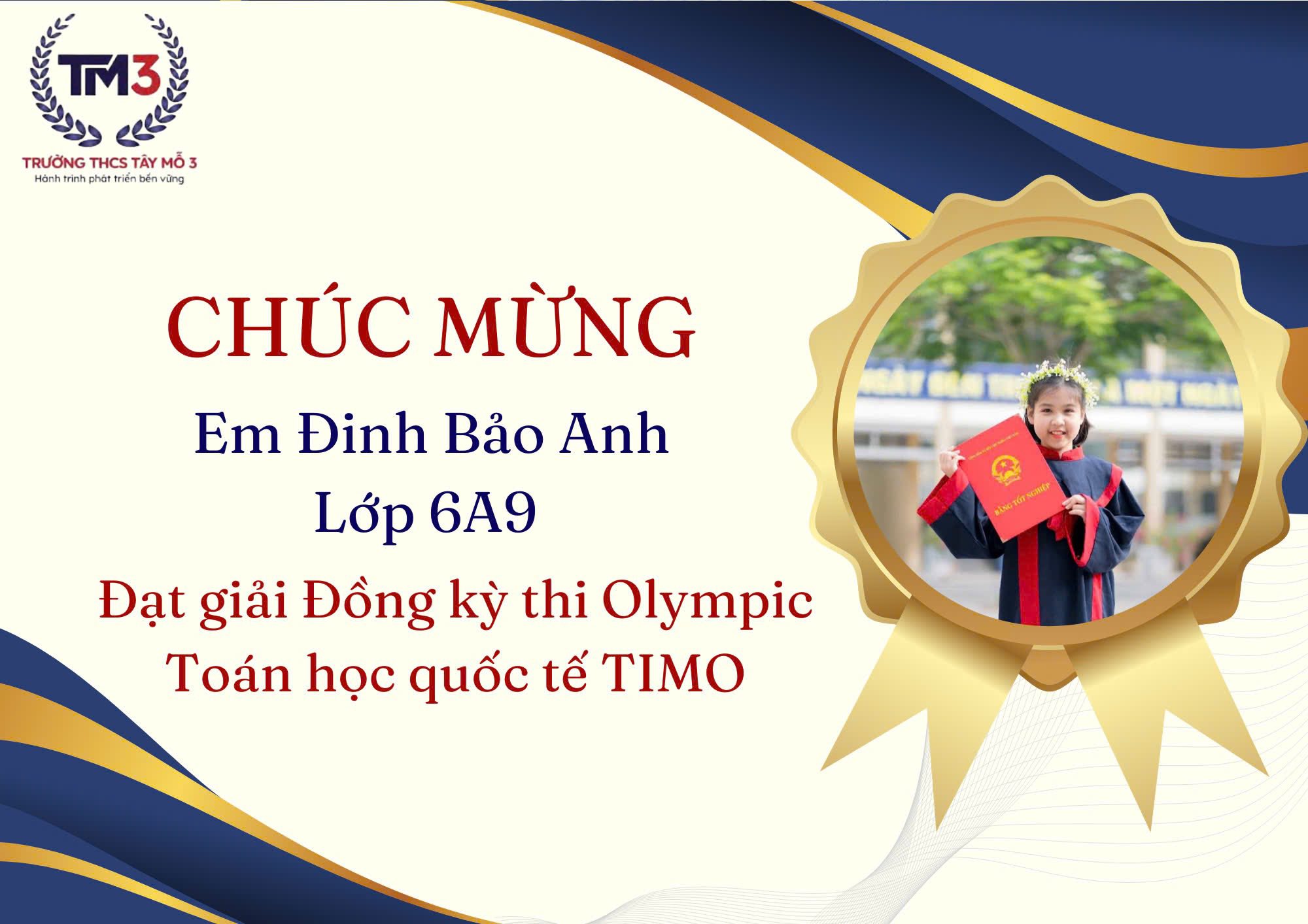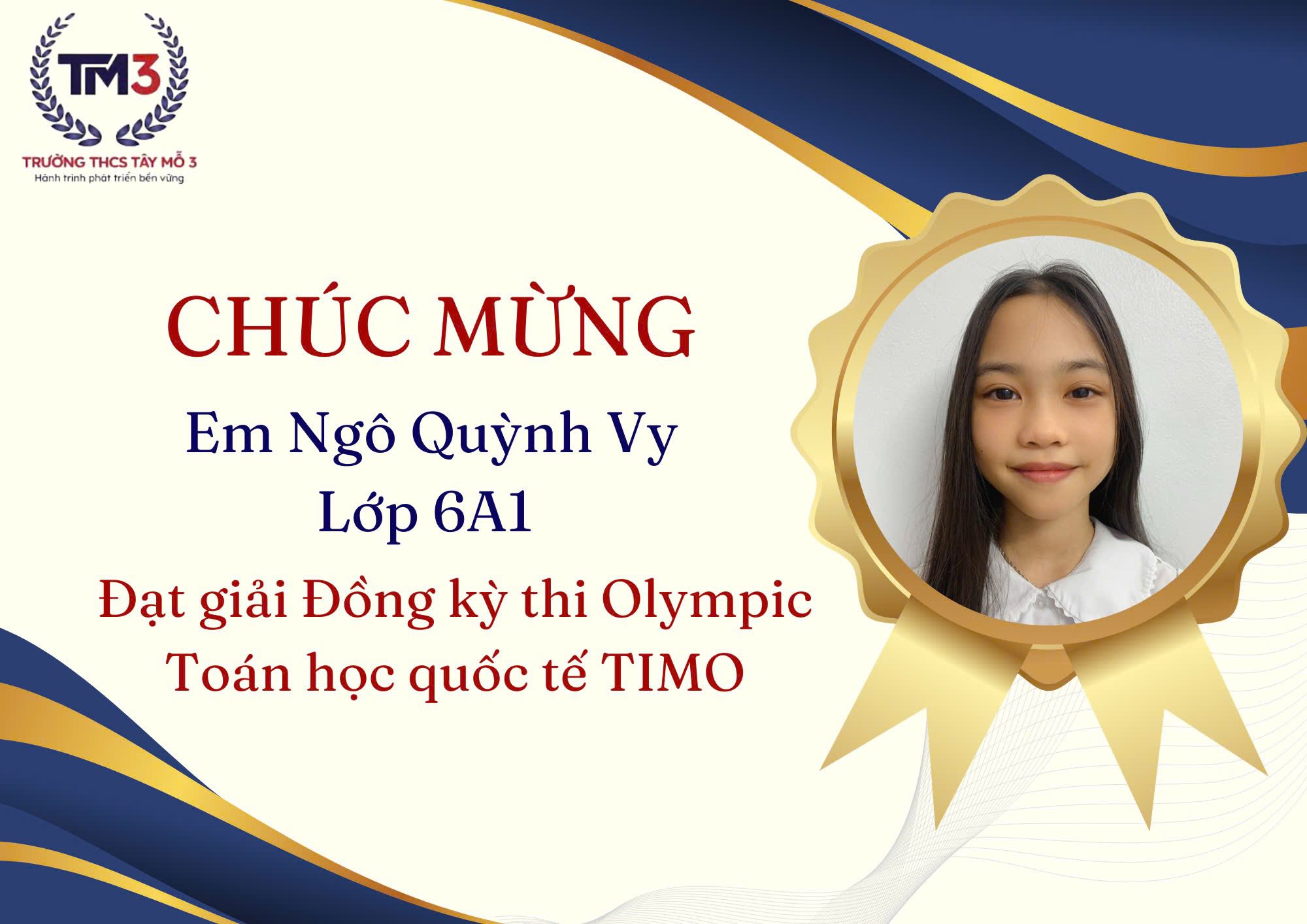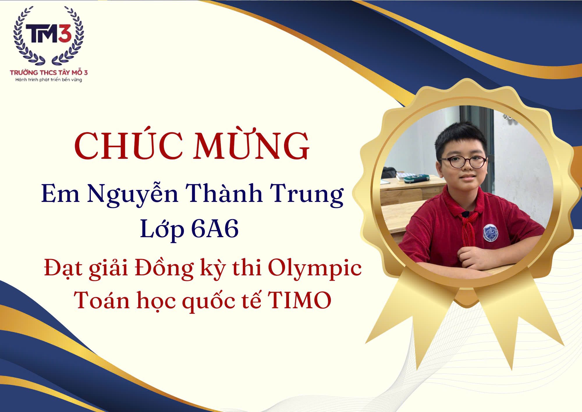 Nhà trường vô cùng tự hào thông báo kết quả rực rỡ của các em học sinh trong vòng Quốc gia Kỳ thi Olympic Toán học quốc tế TIMO vừa qua. Vượt qua những bài toán hóc búa với sự tự tin và tư duy sắc bén, các em đã mang về những tấm huy chương danh giá, khẳng định vị thế và chất lượng học thuật của học sinh Tây Mỗ 3.